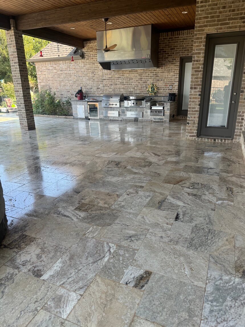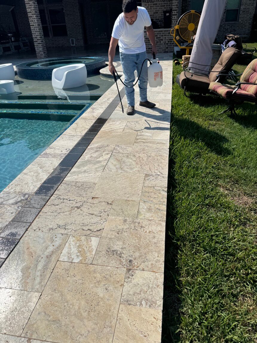 he natural stone throughout your property is a single, continuous element of design and value. However, interior and exterior surfaces face vastly different challenges. Outdoors, your patios, pool decks, and walkways battle constant exposure to UV rays, rain, and organic growth. Indoors, your floors, countertops, and showers contend with daily foot traffic, spills, and household wear. Our team possesses the specialized expertise for both environments. We utilize durable, weather-resistant sealers for maximum exterior protection and apply premium, finish-enhancing treatments to maintain the elegance of your interiors. Trust a single expert to provide a consistent standard of excellence for your entire investment.